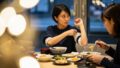 オフィスで体臭を気にして腕のにおいを確認する女性